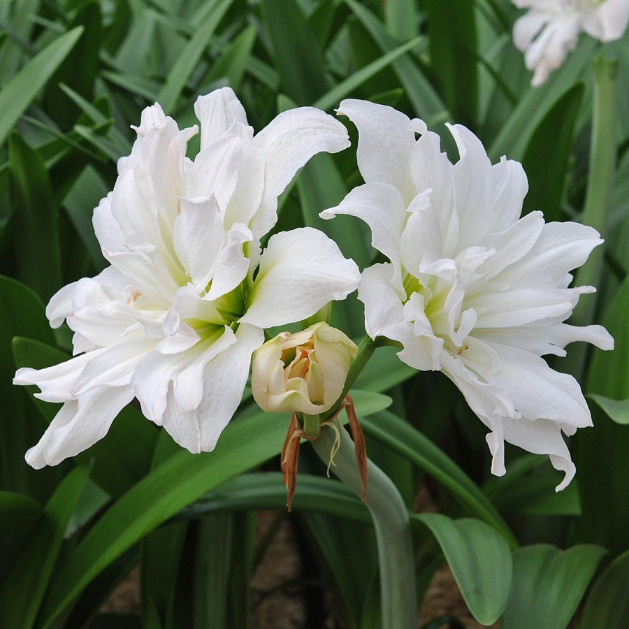 Амариллис махровый арктик нимф - это великолепное растение, которое поразит вас своей красотой и изяществом. Его ствол прочный и устойчивый, достигает высоты до 70 см, а его листья имеют элегантную форму и насыщенный зеленый цвет. Цветки амариллиса махрового арктик нимф белые с розоватым отливом, что создает неповторимый и нежный образ.
