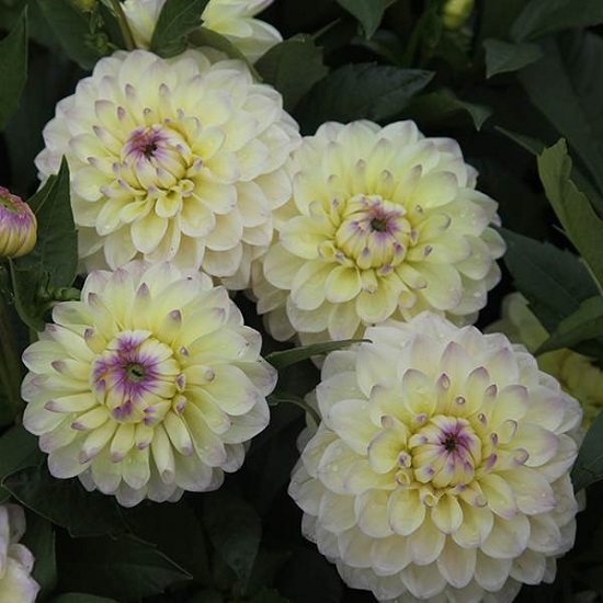 Георгина декоративная Лейк Кери - это великолепное растение с кремовыми цветками, украшенными нежными сиреневыми 'подпалинами' по краю лепестков. Ее стебель достигает высоты до 50 см, а размер цветка составляет 12 см. Листья георгины имеют интересную форму и образуют 7 лепестков. Это растение предпочитает солнечные места и дренированные богатые почвы.