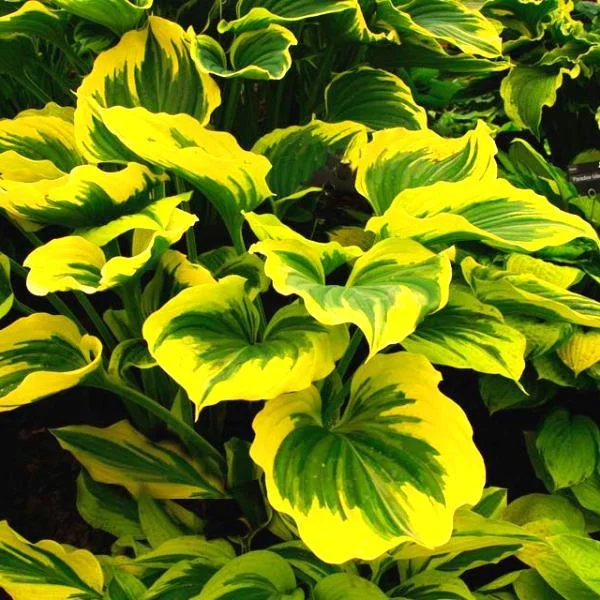 Летняя окраска листвы : Лучшая хоста 2012 года. Широкий золотистый край, голубовато-зеленый центр