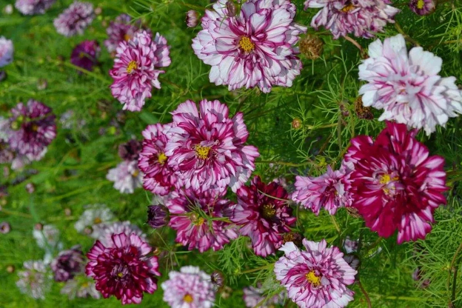 Космея махровая кнопка - это удивительное растение с разнообразной окраской цветков, которое порадует вас своей красотой и изяществом. Ее стебли достигают высоты до 80 см, создавая великолепные групповые посадки в вашем саду. Листья имеют 8 различных форм, что делает растение еще более привлекательным. Космея махровая кнопка предпочитает солнечные места и подходит для выращивания на любых типах почв.