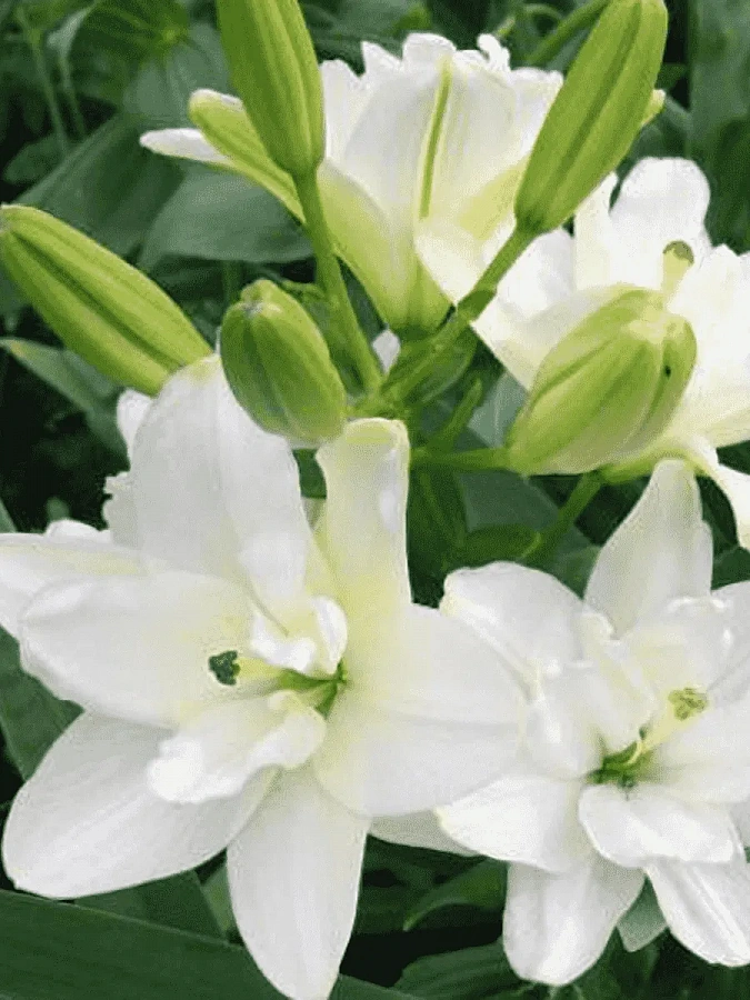 Луковицы лилии Аннамери дрим (Annemaries Dream) порадуют эффектным видом белоснежных махровых цветов, которые распускаются на фоне сочной зелени листьев. Этот неприхотливый сорт можно использовать для наполнения клумб, создания смешанных посадок, украшения мест отдыха, оформления садовых дорожек и декорирования участков вдоль заборов. Луковицы лилии Annemaries Dream предпочитают рыхлую плодородную почву с хорошим дренажем. Место должно быть хорошо освещено, но допустима легкая полутень. Высота взрослых кустов достигает 100 сантиметров. Цветение длится с середины лета до наступления осени.