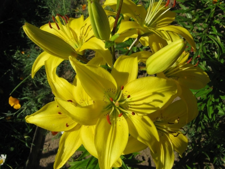 Окраска цветка : ярко-желтый с оранжевыми пыльниками
