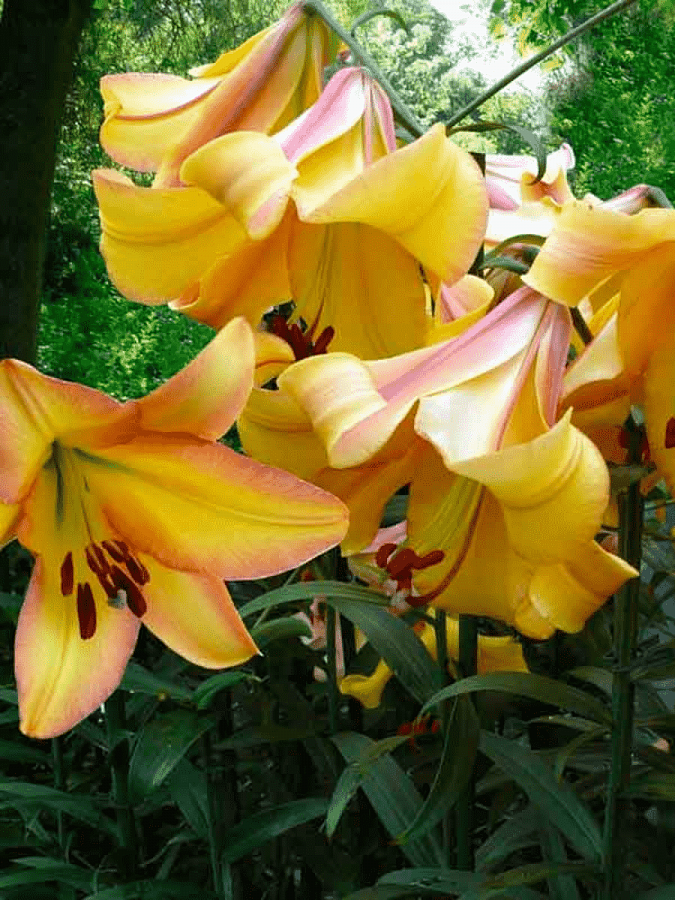 Окраска цветка : желтая c розовой каймой