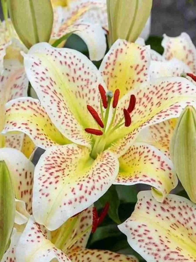 Лилия восточная тайгермун - это изысканное растение с белыми цветками, украшенными центральной салатовой жилкой и пурпурными крапинками. Ее стебель достигает высоты до 100-110 см, а размер цветка составляет 16 см. Лилия восточная taygermun отличается травянистой жизненной формой и принадлежит к группе многолетних цветов. Для успешного выращивания растения рекомендуется использовать дренированные и плодородные почвы.