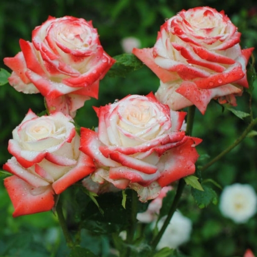 Окраска цветка : белый с кармино-красными краями