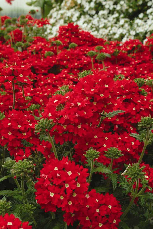 Вербена обсешн ред - это удивительное растение с красивыми ярко-красными цветками, которые будут радовать вас своим блеском и изяществом. Этот сорт вербены отличается компактным размером до 15-20 см, что делает его идеальным выбором для групповых посадок в вашем саду или на балконе. Листья вербены обладают особой формой и текстурой, придающей растению изысканный вид.